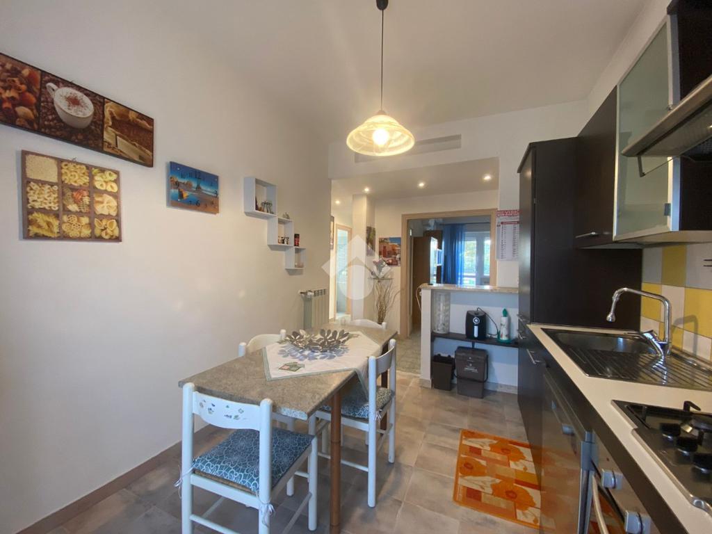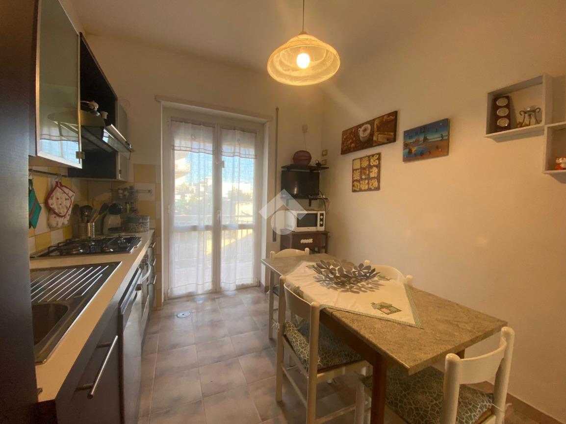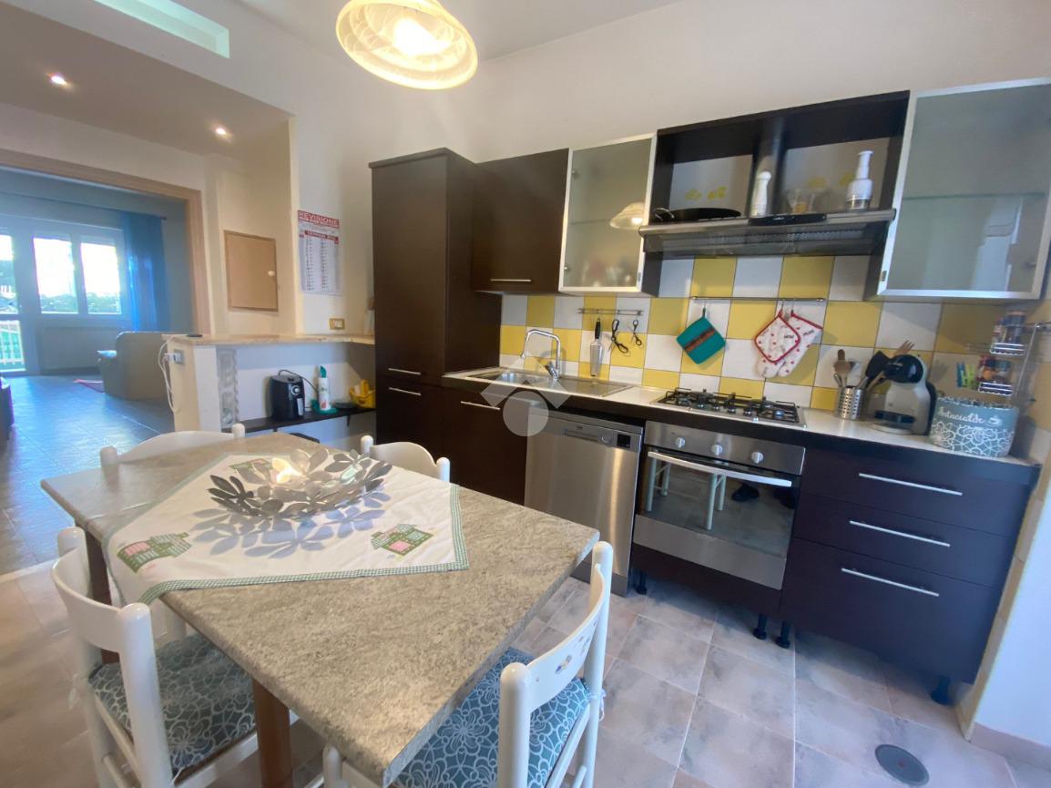 La casa è composta da: ingresso, cucina, sala separata, camera matrimoniale, cameretta, lavanderia con accesso al giardino privato e bagno finestrato con doccia. L'appartamento è posto al piano terra rialzato con giardino privato, tripla esposizione, a pochissimi passi dal mare e dai negozi.