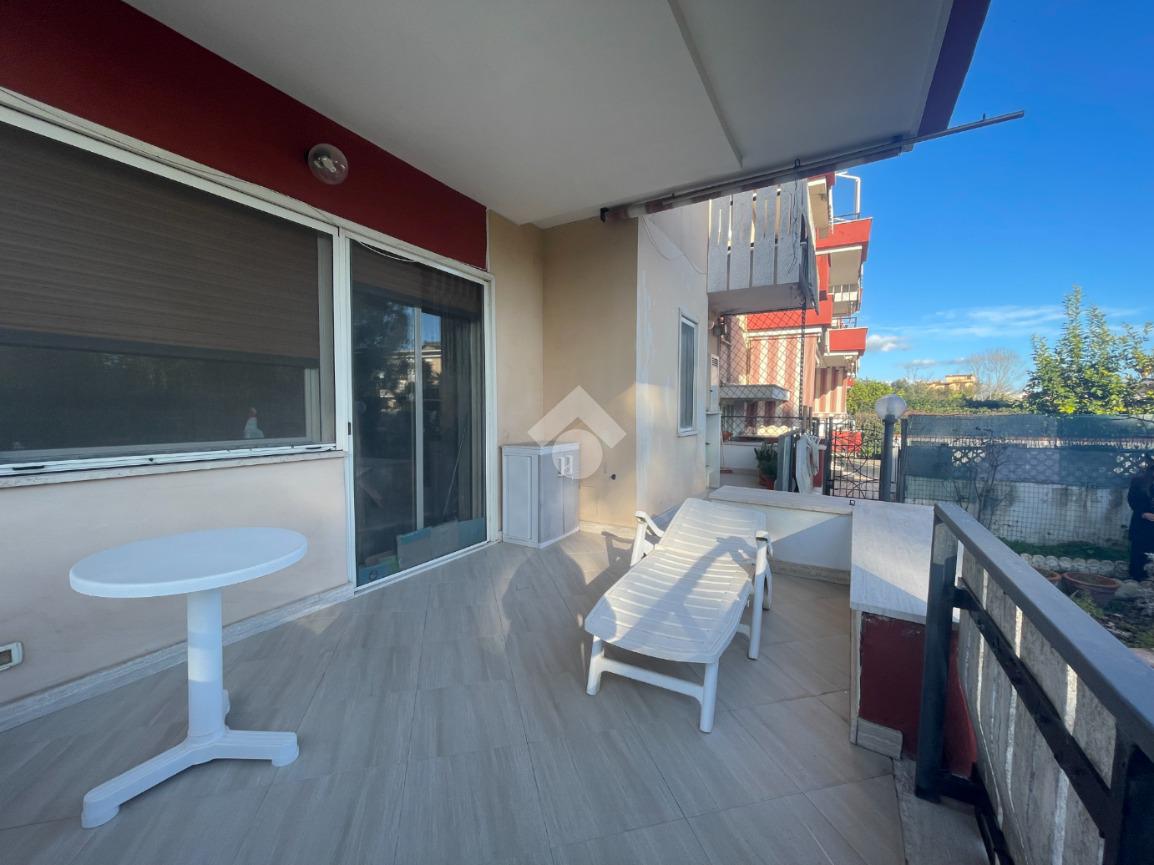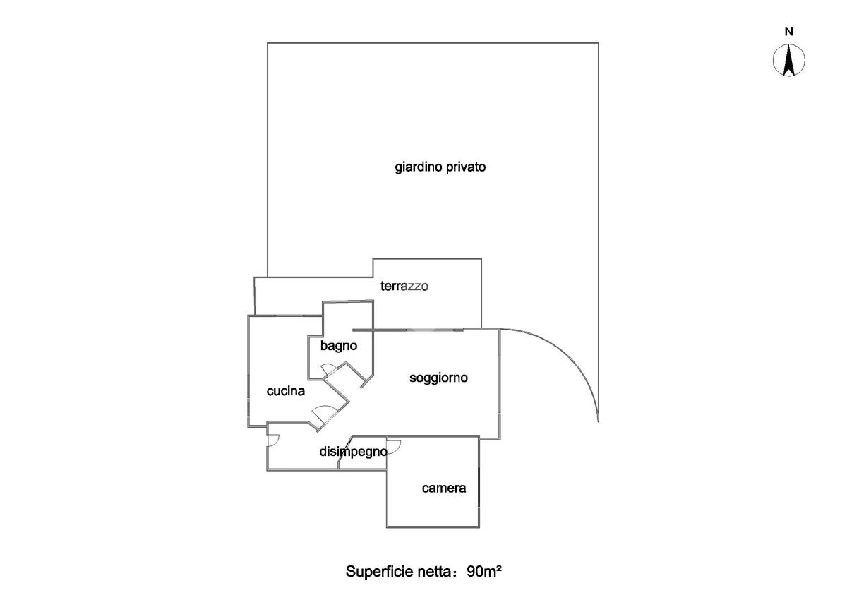 La zona giorno si apre su un balcone che garantisce un piacevole spazio esterno. Il giardino privato rappresenta un valore aggiunto, perfetto per momenti di svago all'aria aperta.